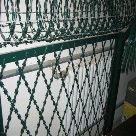 Razor blade barbed wire is a kind of modern security fencing materials fabricated with razor-sharp steel blade and high-tensilewire. Razor blade barbed wire is a special product for safety protection, made of galvanized wire, PVC coated wire and stainless steel mesh material. Razor blade barbed wire blades include fishhook blades, long blades, tearing blades, medium blades and short blades. Razor blade barbed wire is an ideal material to protect your fields and property. Razor blade barbed wire can be used to create effective barriers around various objects, usually for civilian,and special purposes. Install the razor blade barbed wire to set up a strong physical barrier with different heights, widths and thicknesses. It is usually installed on the ground or wall, as well as welded wire fences and chain link fences. Razor blade barbed wire can be installed to achieve the result of frightening and stopping to the aggressive perimeter intruders, with piecing and cutting razor blades mounted at the top of the wall, also the special designs making climbing and touching extremely difficult.