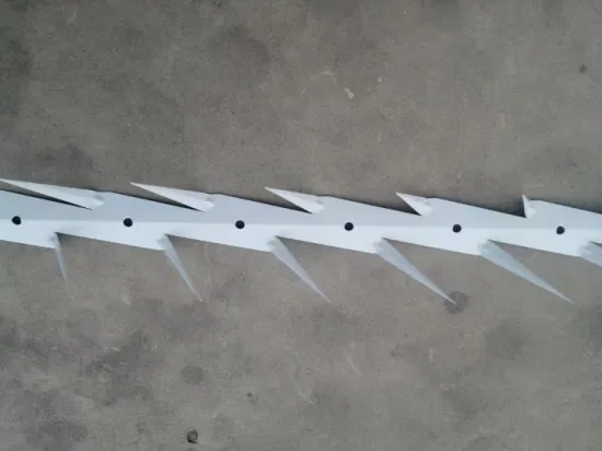 There are three types of large and small ones: large ones are mostly spread on traffic arteries, and small ones are mostly spread in front of and in depth of positions. It is generally used by garden, factory, airport and other fences to protect and prevent theft.Wall Spike is a very cost effective solution to preventing individuals from scaling fences, walls, roof's & gates. Wall Spike which can be rapidly installed to existing structures can maximise your sites security with ease. Wall Spike come in 0.5 metre & 1.22 metre lengths and can be cut to length for the more complex installs. The ability to polyester powder coat the galvanised product ensures that it doesn't affect the aesthetics of your site. Wall Spike Material: hot-dipped galvanized and PVC coated. Wall Spike Ideal for protecting Low Roofs, Walls, Fence Toppings, Schools, Medical Centers and Public Buildings