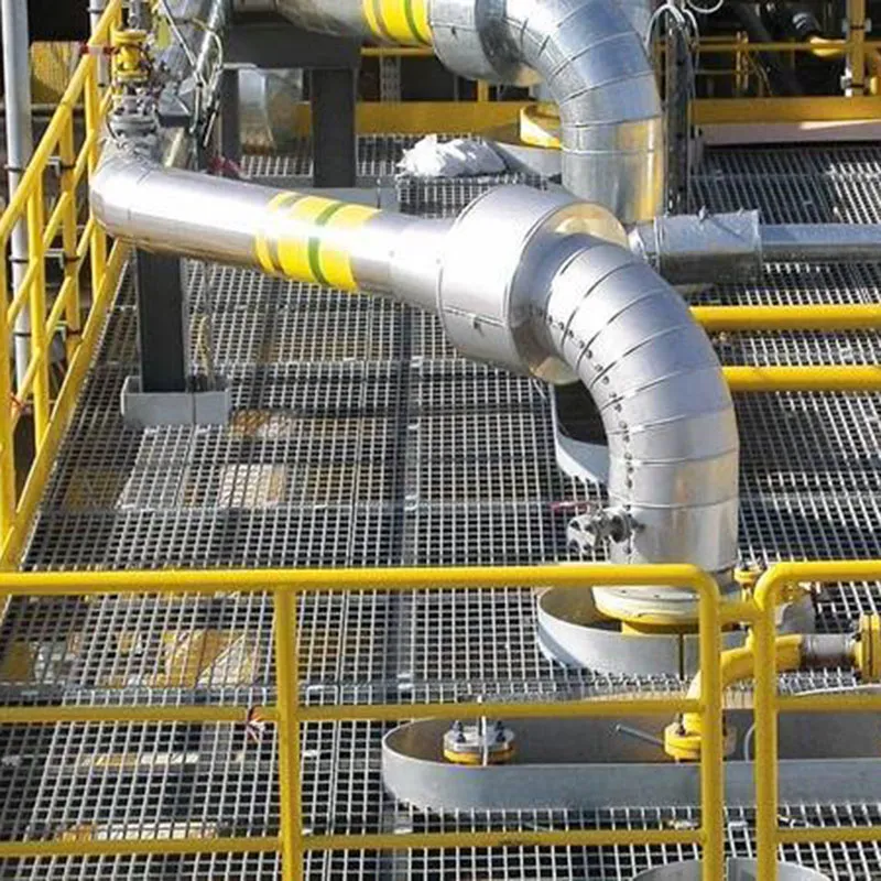 Platform grating, composed of several pieces of welded steel grating or press locked gratings are commonly installed in ships and industrial applications, such as refineries, power plants and offshore platforms.